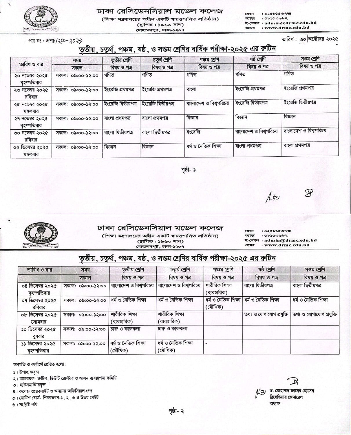 ৩য়, ৪র্থ, ৫ম, ৬ষ্ঠ ও সপ্তম শ্রেণির বার্ষিক পরীক্ষা-২০২৫ এর রুটিন