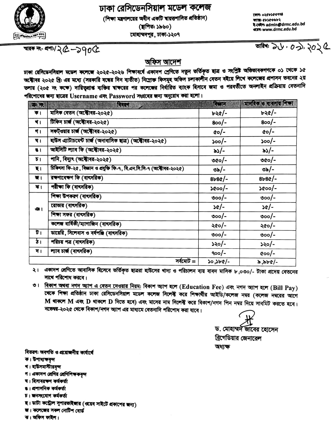 অফিস আদেশ (ফিসসমূহ পরিশোধ করা প্রসঙ্গে)।