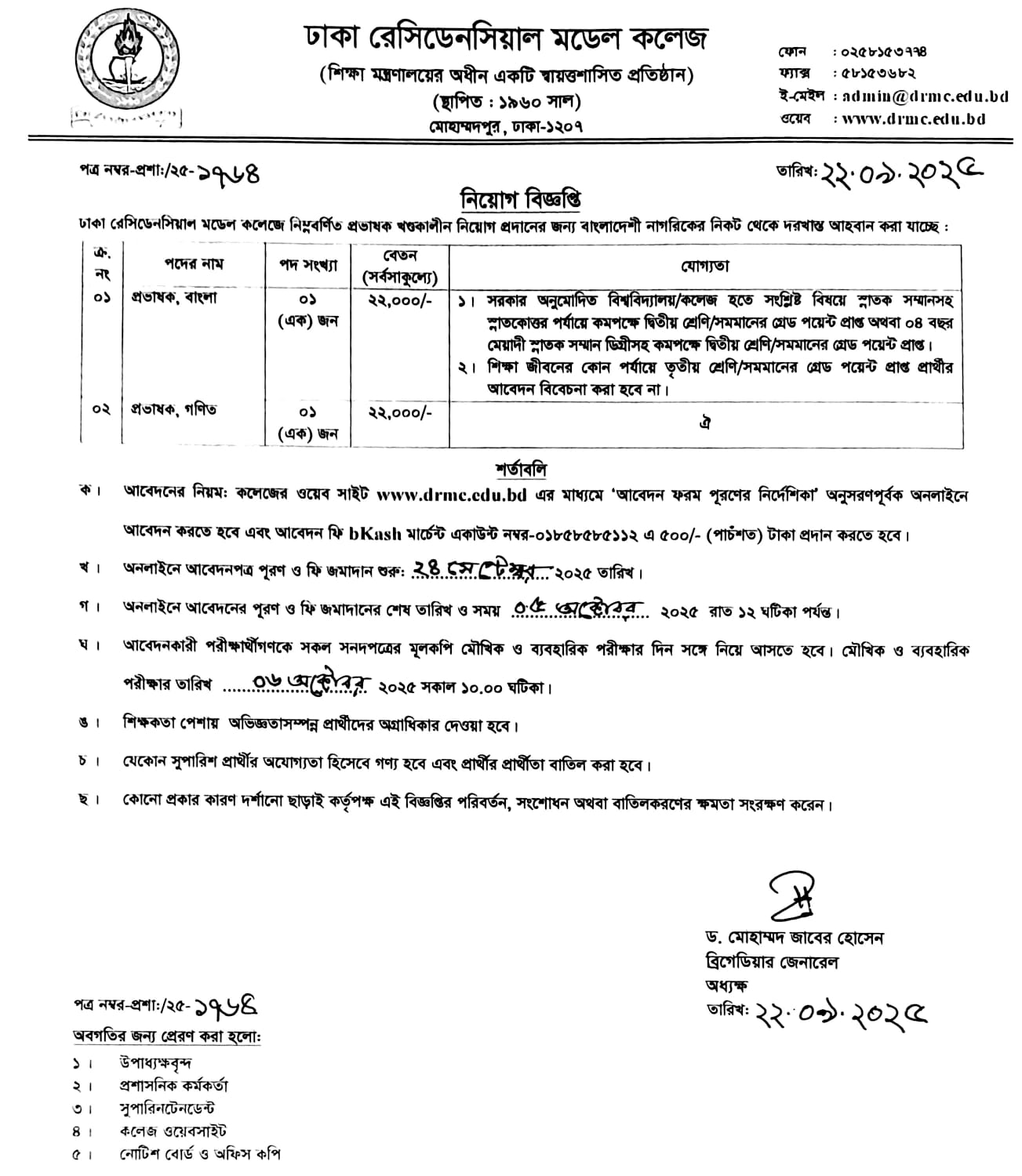 নিয়োগ বিজ্ঞপ্তি (প্রভাষক, খন্ডকালীন)