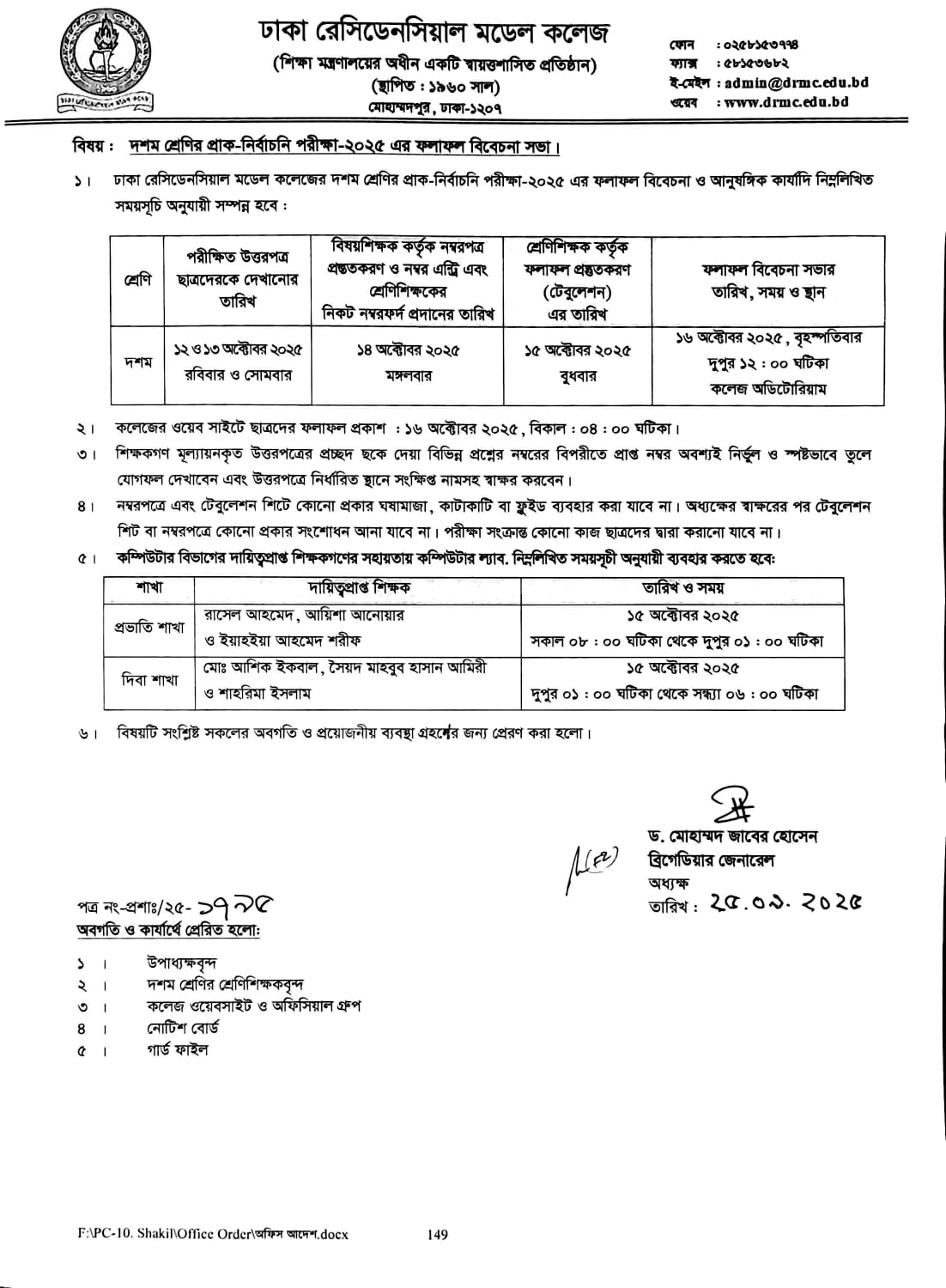 দশম শ্রেণির প্রাক-নির্বাচনি পরীক্ষা-২০২৫ এর ফলাফল বিবেচনা সভা প্রসঙ্গে।