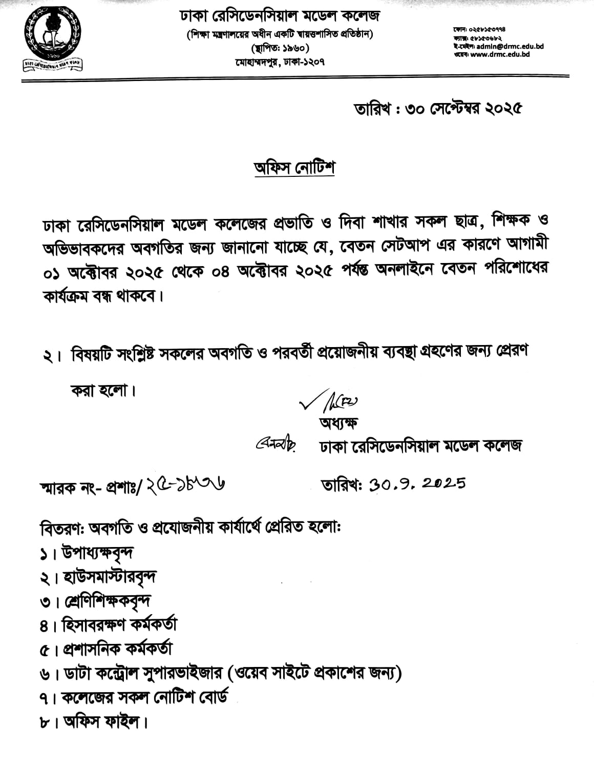 অফিস নোটিশ (অনলাইনে বেতন পরিশোধের কার্যক্রম বন্ধ প্রসঙ্গে।)