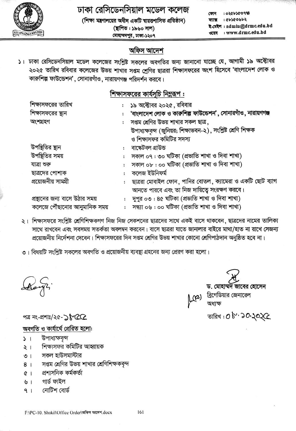অফিস আদেশ (সপ্তম শ্রেণির শিক্ষাসফর কার্যসূচি প্রসঙ্গে।)
