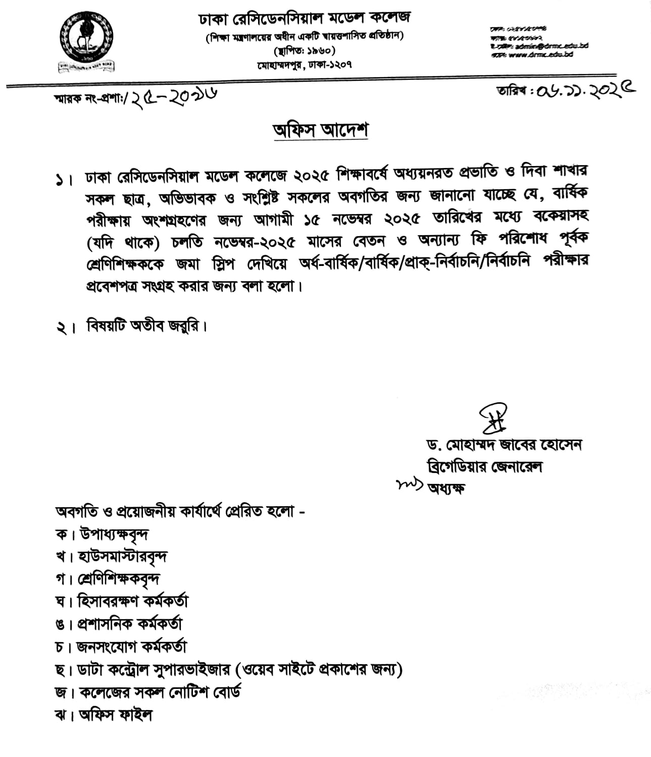 অফিস আদেশ ( নভেম্বর -২০২৫ মাসের বেতন ও অন্যান্য ফি পরিশোধ প্রসঙ্গে)