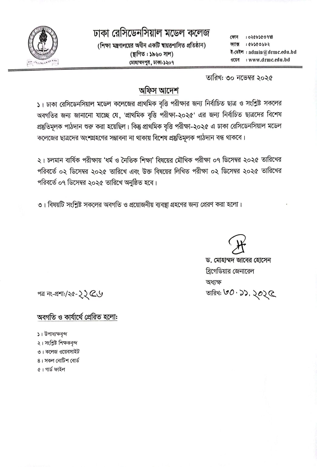 প্রাথমিক বৃত্তি পরীক্ষা -২০২৫ এবং ধর্ম ও নৈতিক শিক্ষা এর বার্ষিক পরীক্ষার তারিখ পরিবর্তন প্রসঙ্গে।
