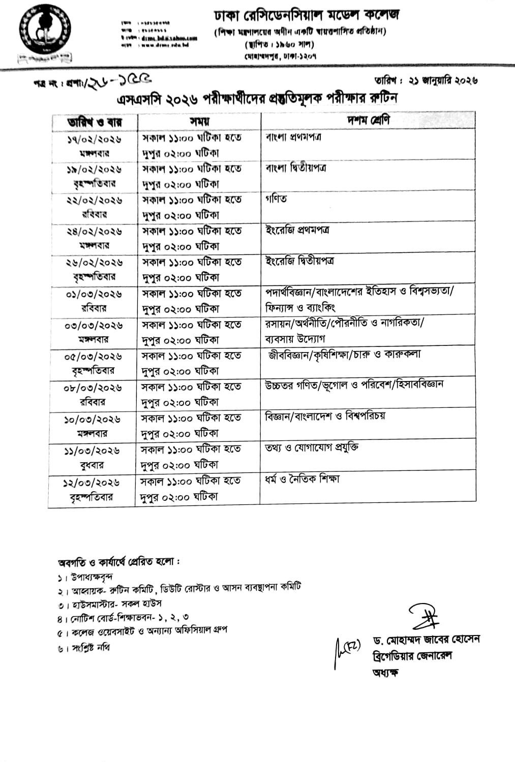 এসএসসি ২০২৬ পরীক্ষার্থীদের প্রস্তুতিমূলক পরীক্ষার রুটিন