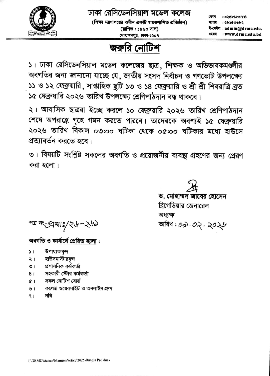 জরুরী নোটিশ (শ্রেণী পাঠদান বন্ধ প্রসঙ্গে)