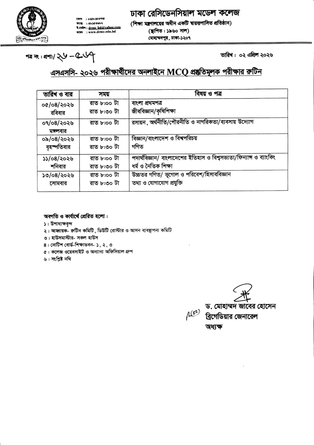এসএসসি ২০২৬ পরীক্ষার্থীদের অনলাইনে MCQ প্রস্তুতিমূলক পরীক্ষার রুটিন