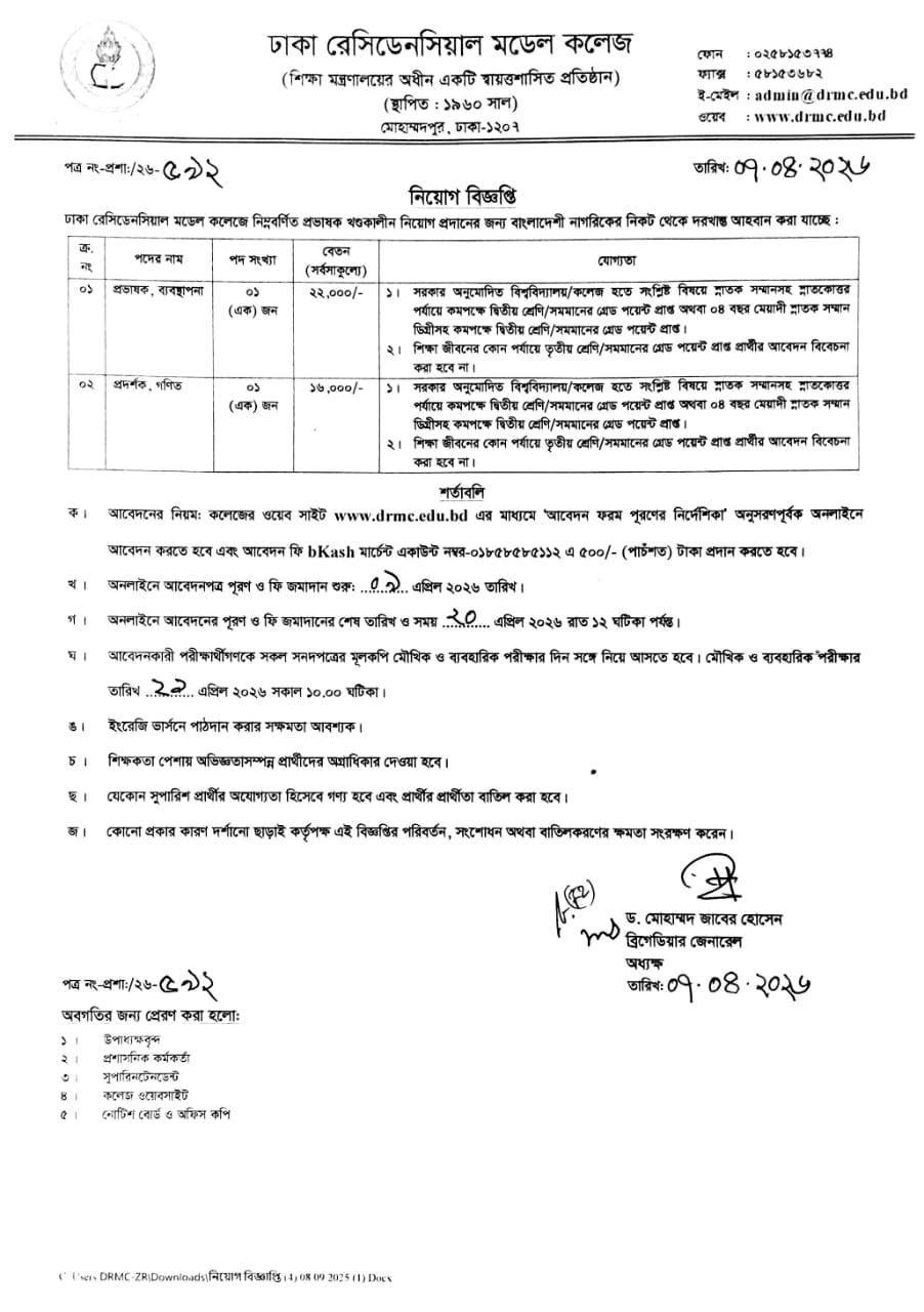 নিয়োগ বিজ্ঞপ্তি (প্রভাষক, ব্যবস্থাপনা ও প্রদর্শক, গণিত)