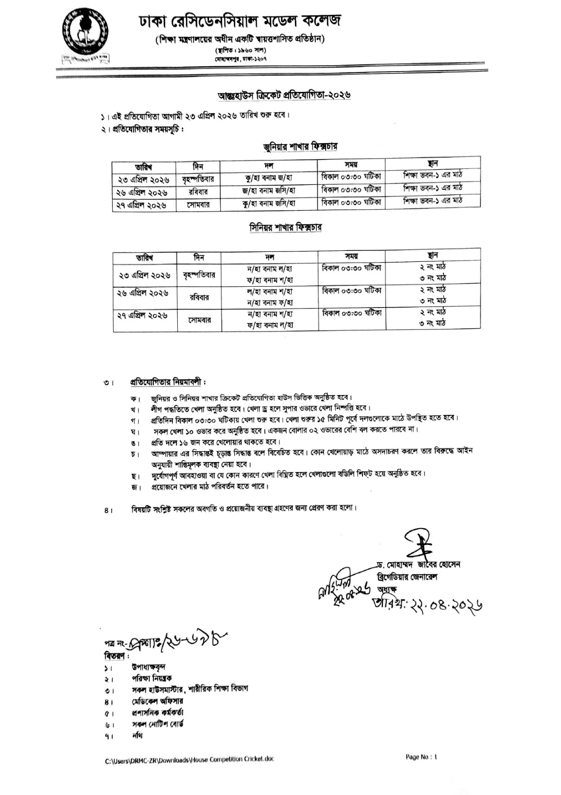 আন্ত হাউস ক্রিকেট প্রতিযোগিতা ২০২৬
