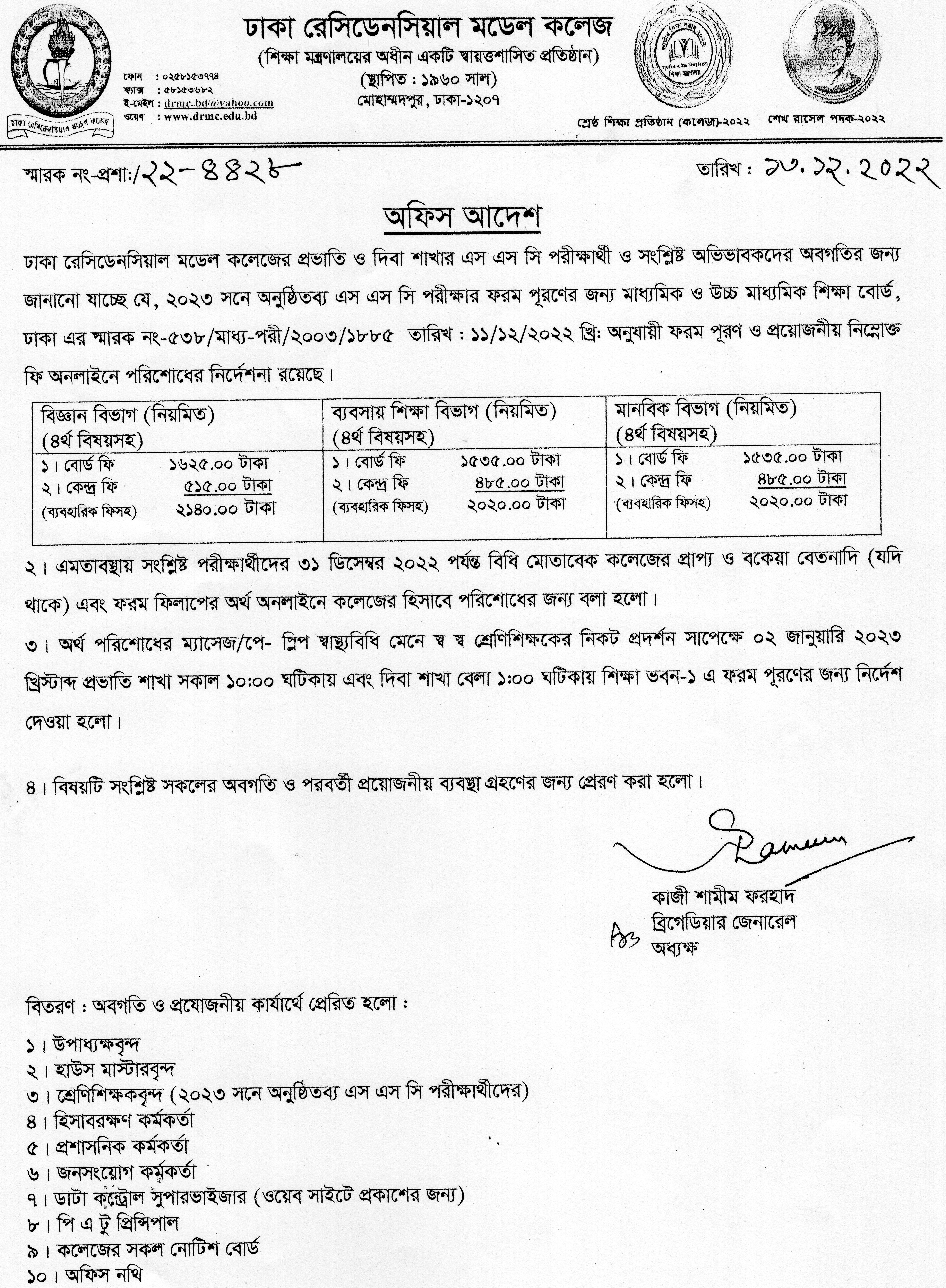 ২০২৩ সালে অনুষ্ঠিতব্য এস.এস.সি পরীক্ষার্থীদের ফরম পূরণ সংক্রান্ত