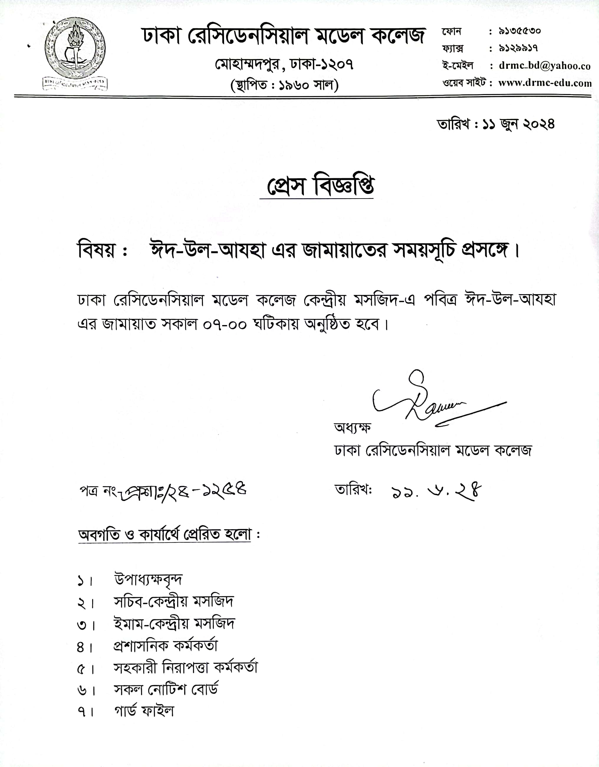 প্রেস বিজ্ঞপ্তি -২০২৪
