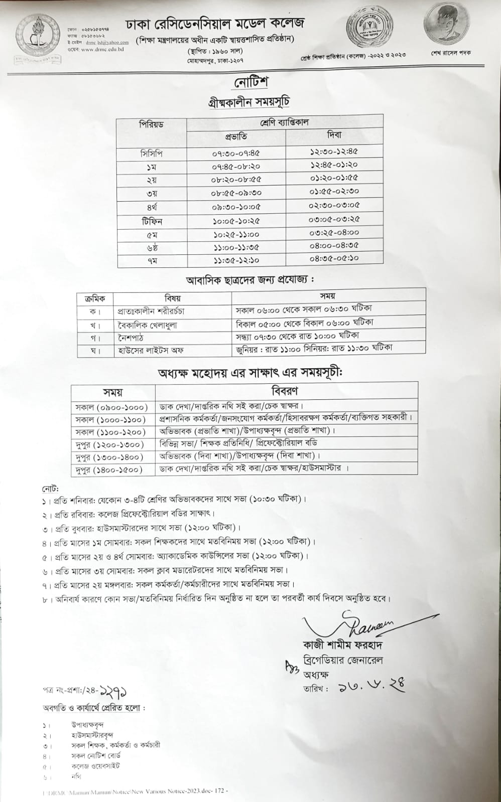 অধ্যক্ষ মহোদয়ের সাথে সাক্ষাৎ ও গ্রীষ্মকালীন সময়সূচি