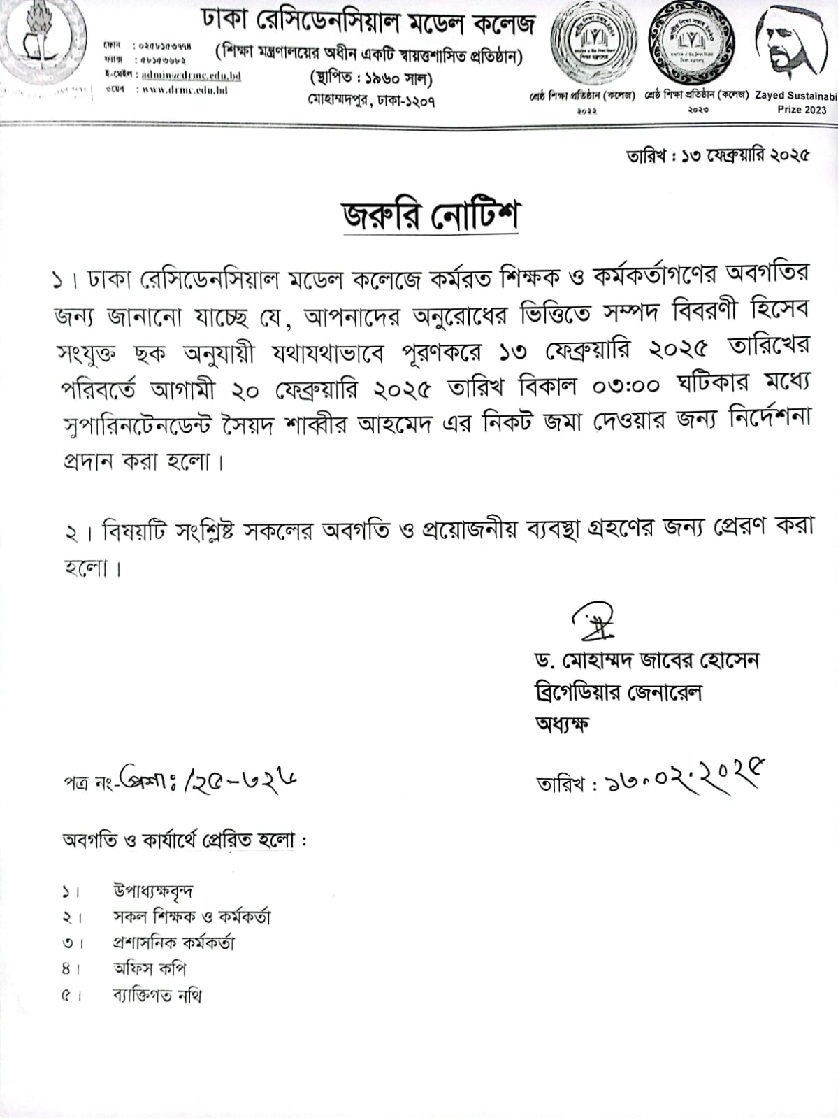জরুরী নোটিশ (সম্পদ বিবরণী হিসেব পূরণ প্রসঙ্গে-২০২৫)