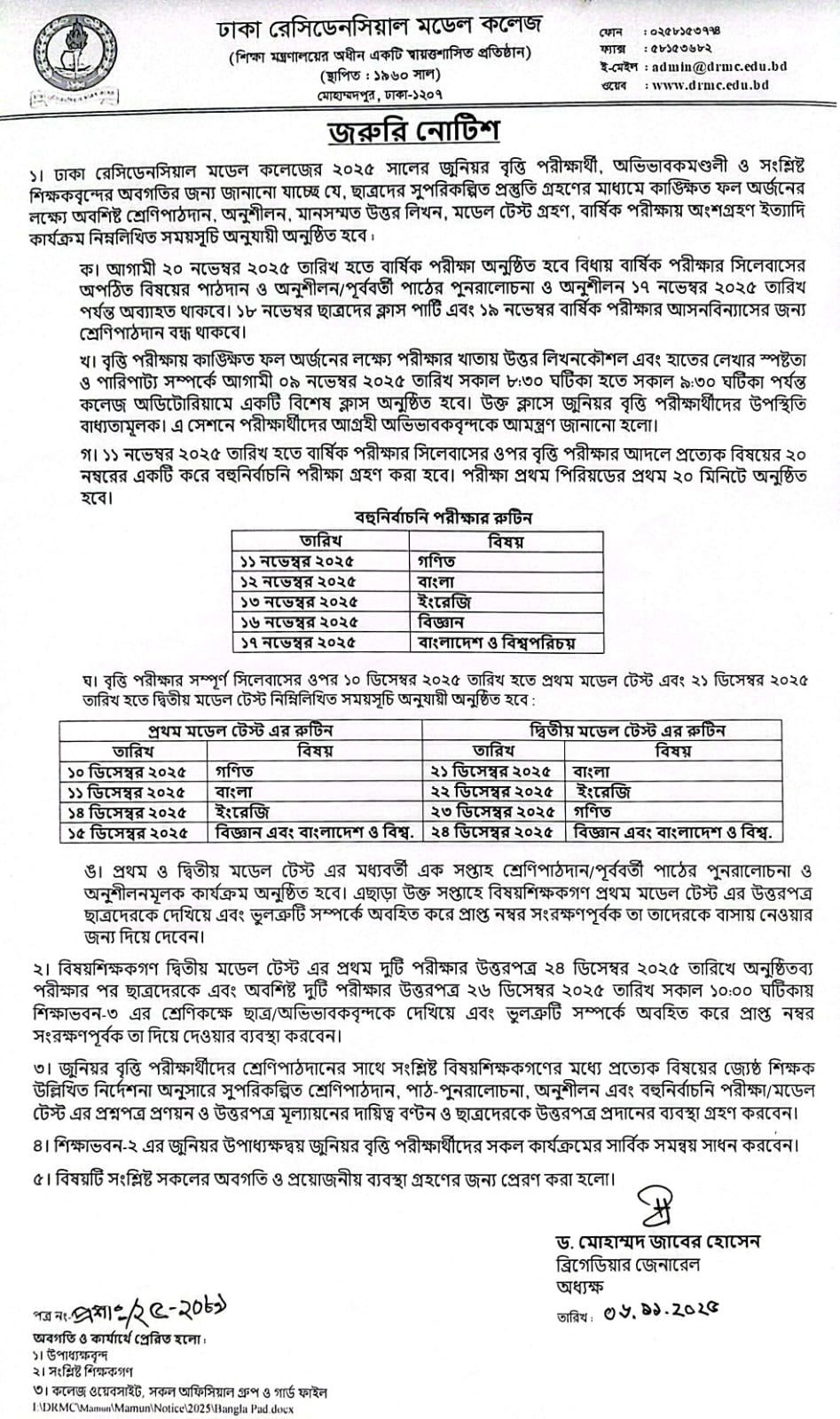 জরুরি নোটিশ ( ২০২৫ সালের জুনিয়র বৃত্তি পরীক্ষার্থী, অভিভাবকমণ্ডলী ও সংশ্লিষ্ট শিক্ষকবৃন্দের অবগতির জন্য)
