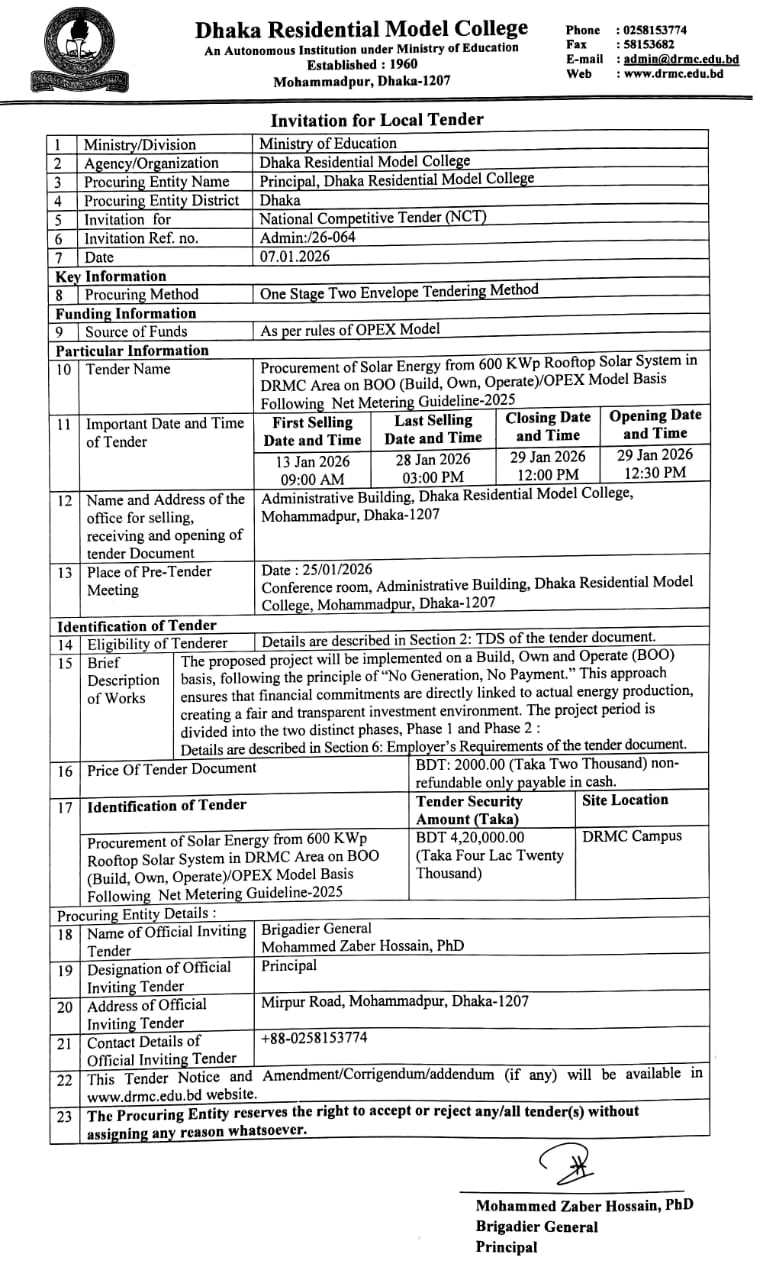 Invitation For Local Tender