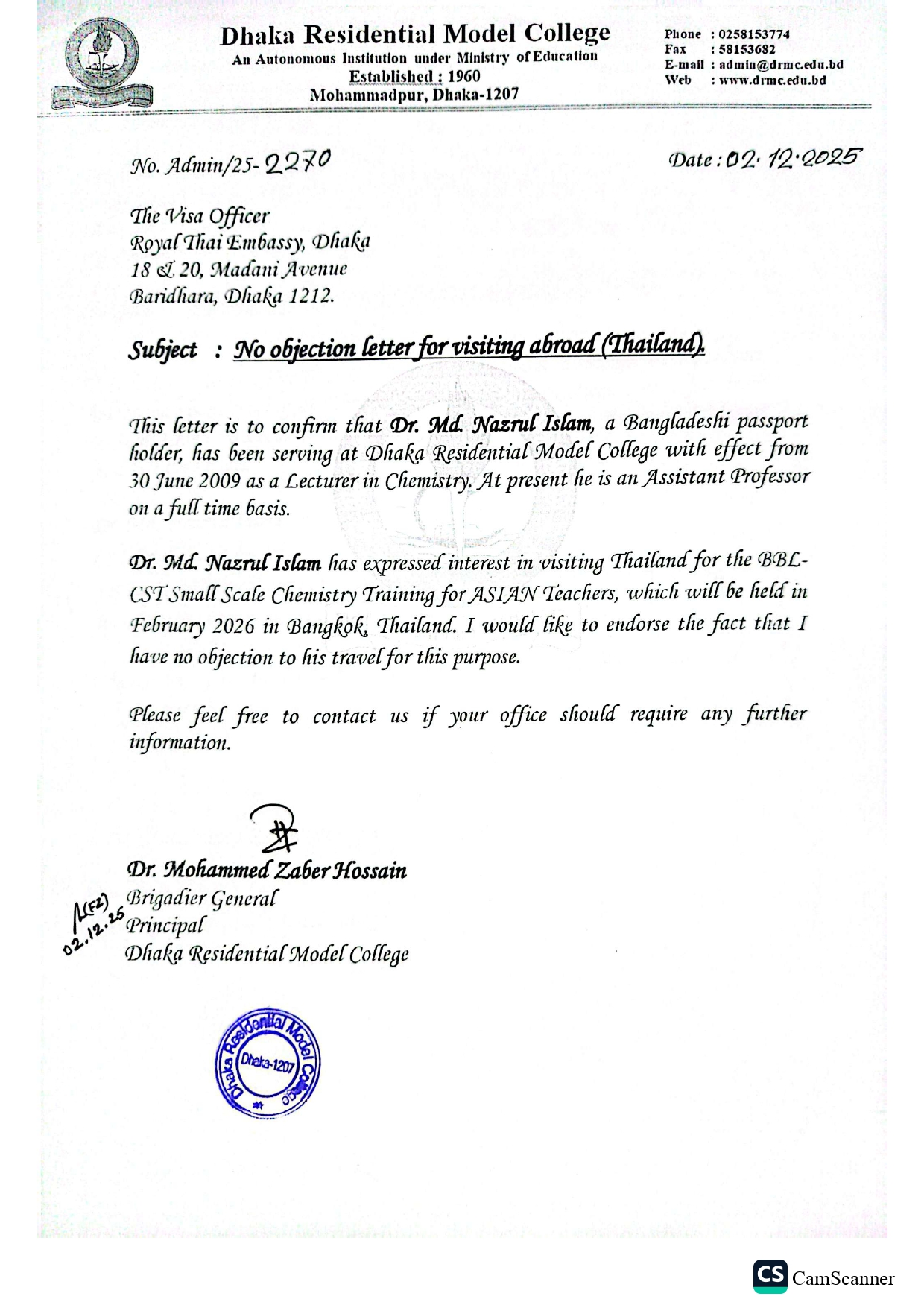 NOC (Dr. Md. Nazrul Islam, Assistant Professor)