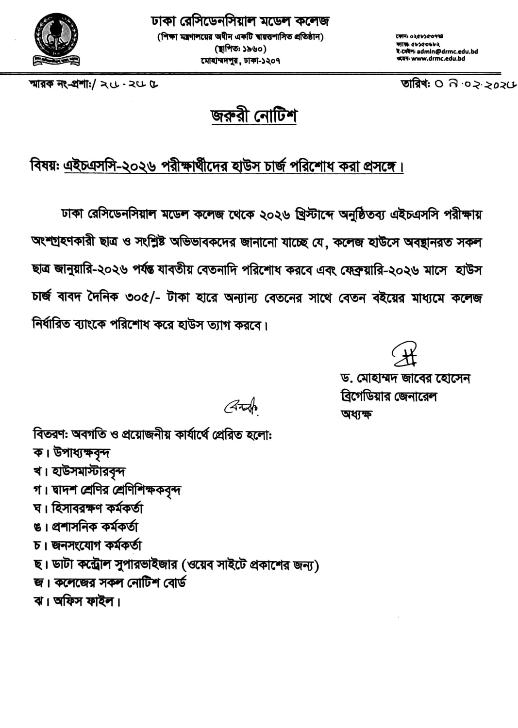 এইচএসসি ২০২৬ পরীক্ষার্থীদের হাউজ চার্জ পরিশোধ করা প্রসঙ্গে