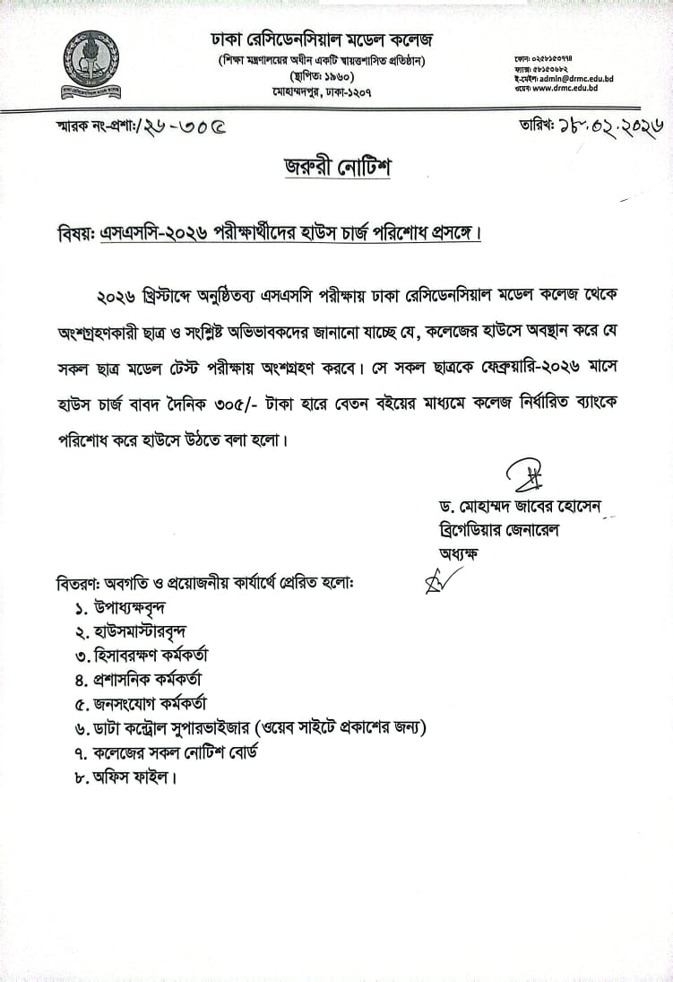এসএসসি ২০২৬ পরীক্ষার্থীদের হাউস চার্জ পরিশোধ প্রসঙ্গে।