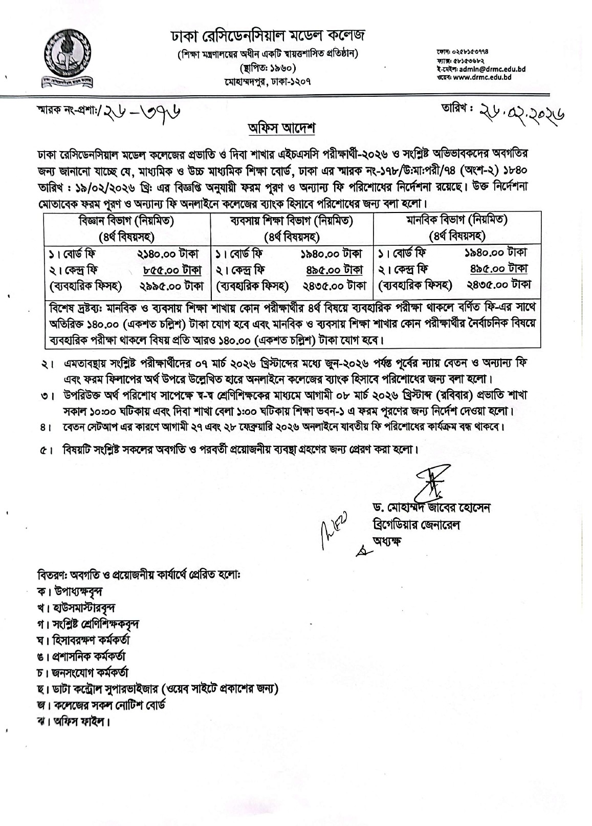 এইচএসসি পরীক্ষার্থী -২০২৬ এর ফরম পূরণ ও অন্যান্য ফি পরিশোধের নির্দেশনা