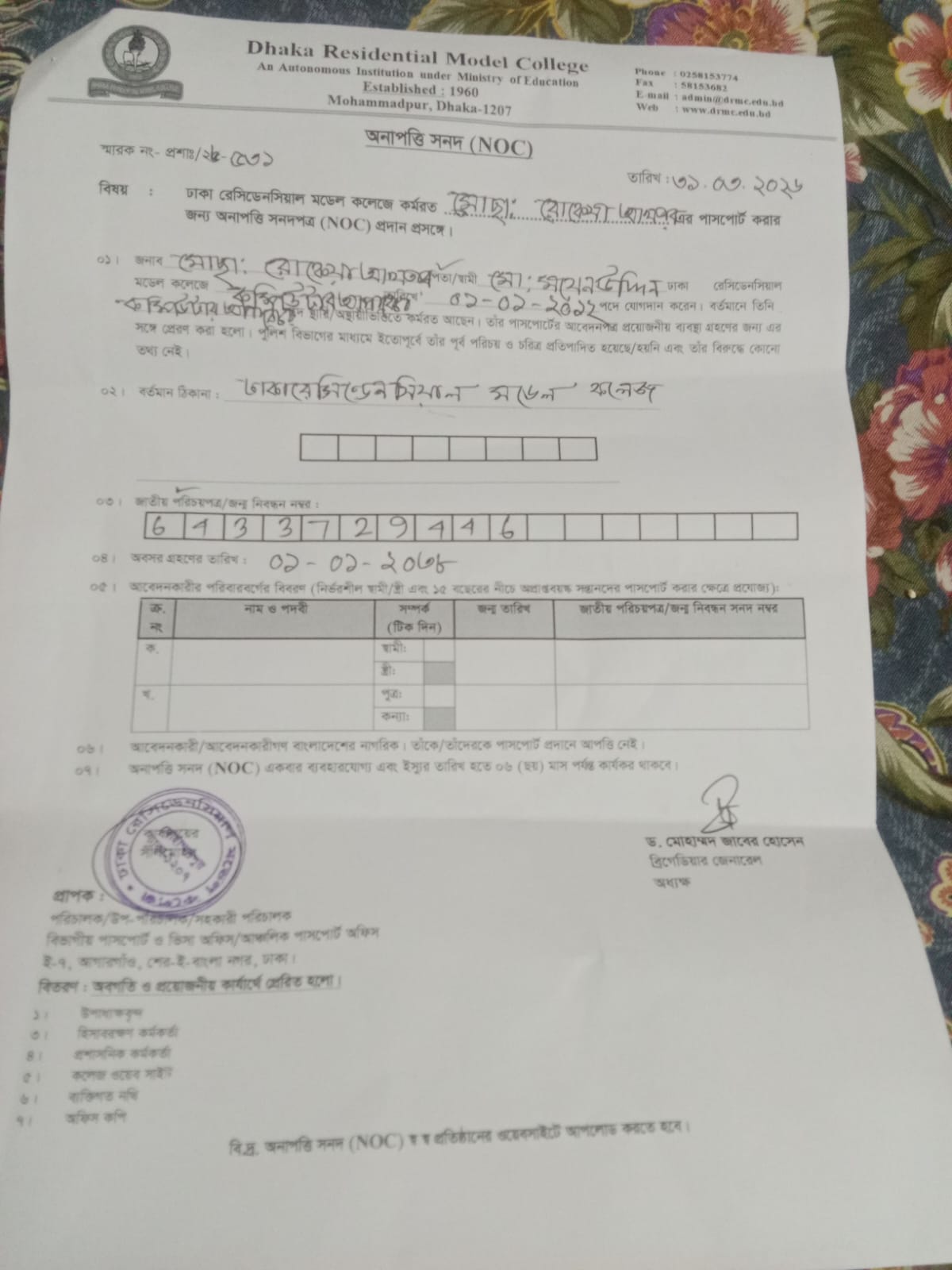 NOC (মোছা: রোকেয়া আকতার, কম্পিউটার অপারেটর)