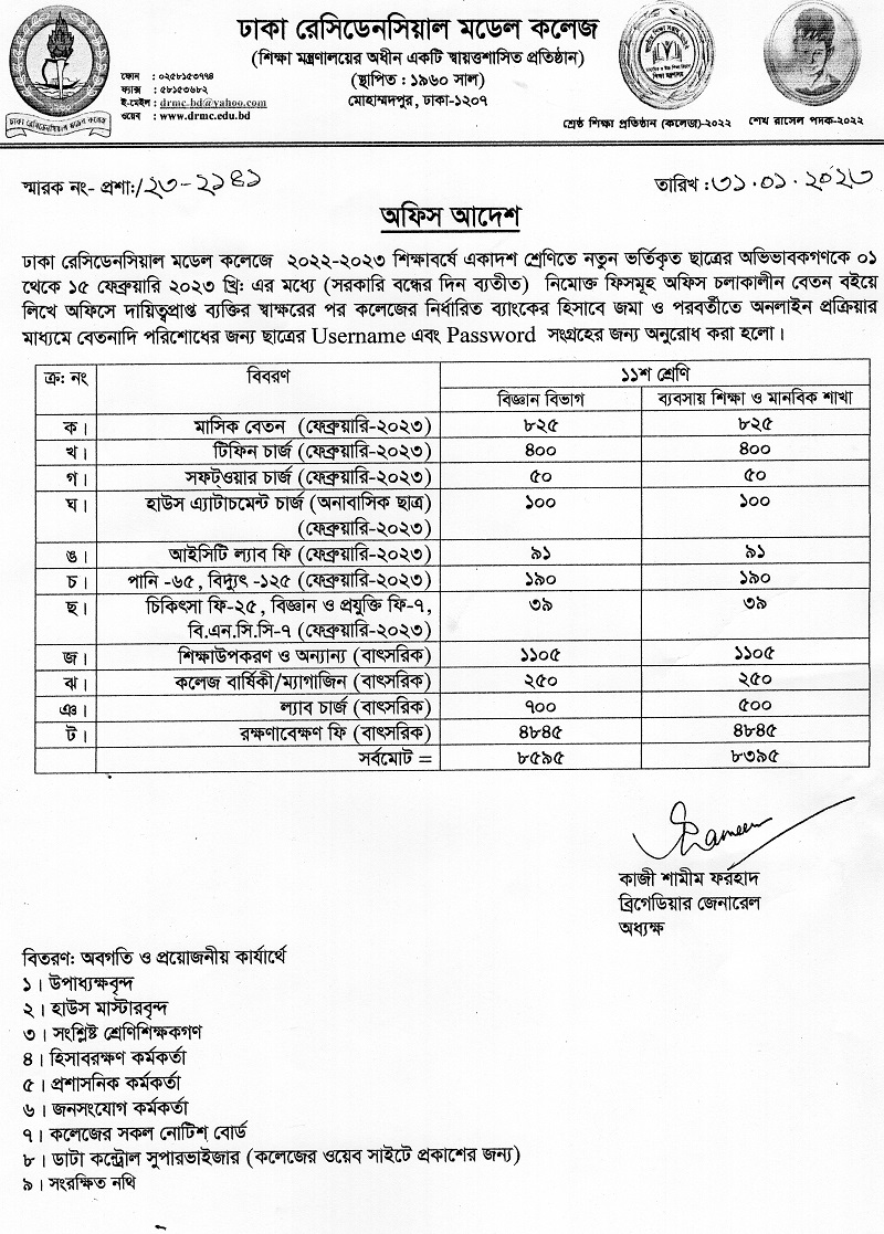 ২০২২-২০২৩ শিক্ষাবর্ষে একাদশ শ্রেণির ছাত্রদের বেতনাদি পরিশোধ ও Username এবং Password প্রাপ্তি প্রসঙ্গে