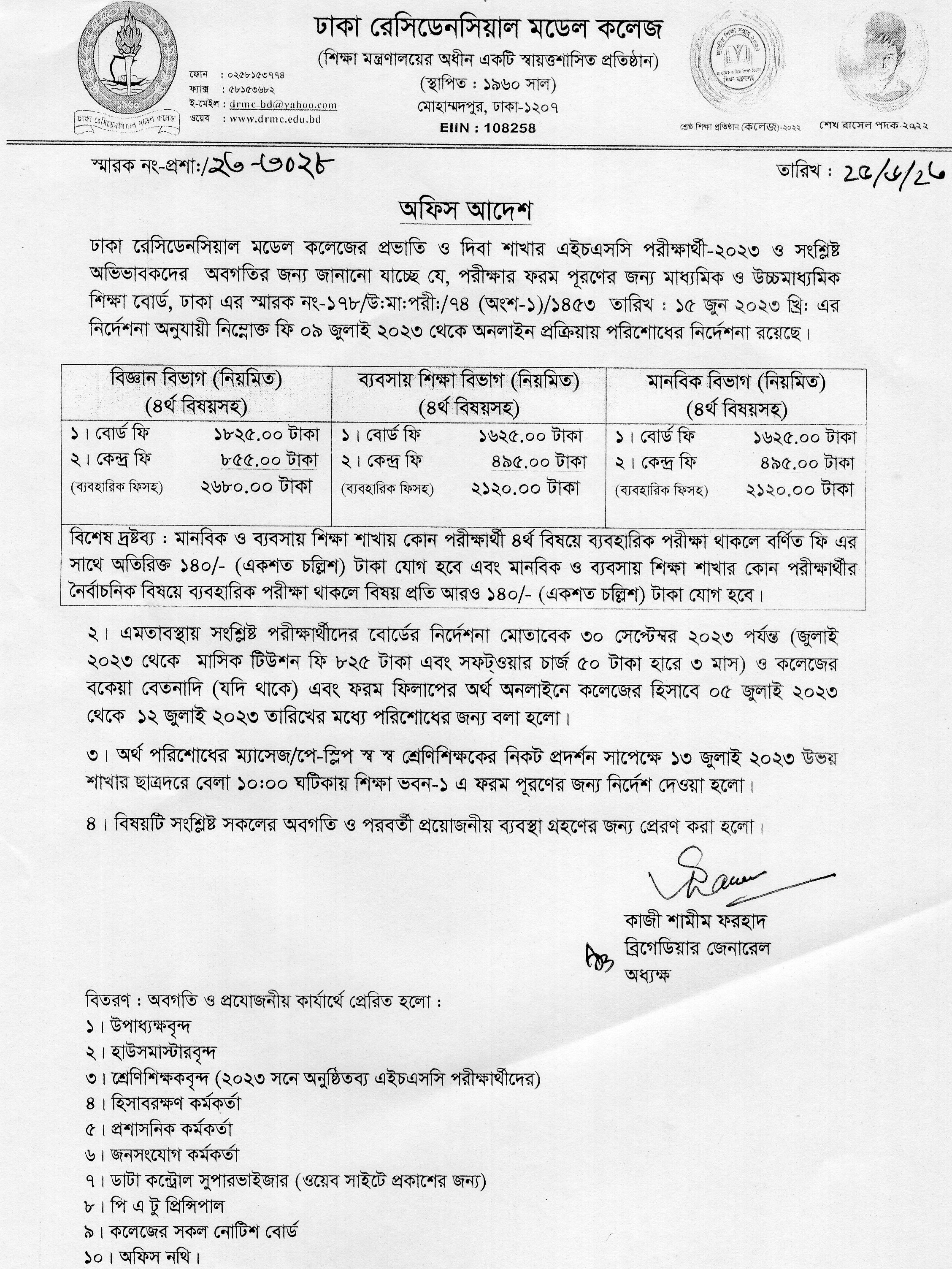 অফিস আদেশ ( এইচএসসি-২০২৩)